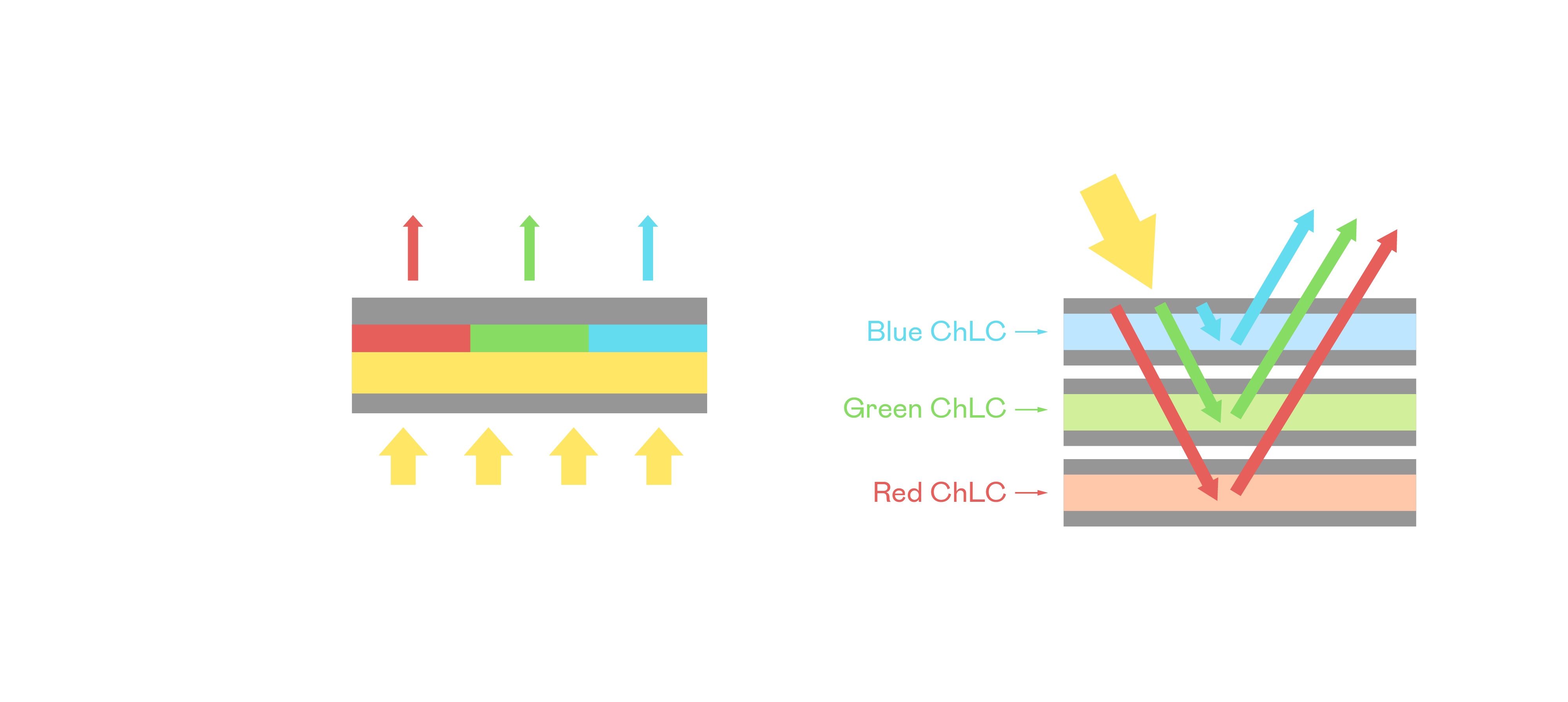 双鱼直播平台胆固醇液晶显示器是由红、绿、蓝三层胆固醇液晶面板堆叠而成,并采用无彩色滤光片设计,减少环境光在反射过程中的损耗。